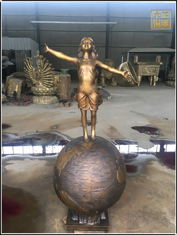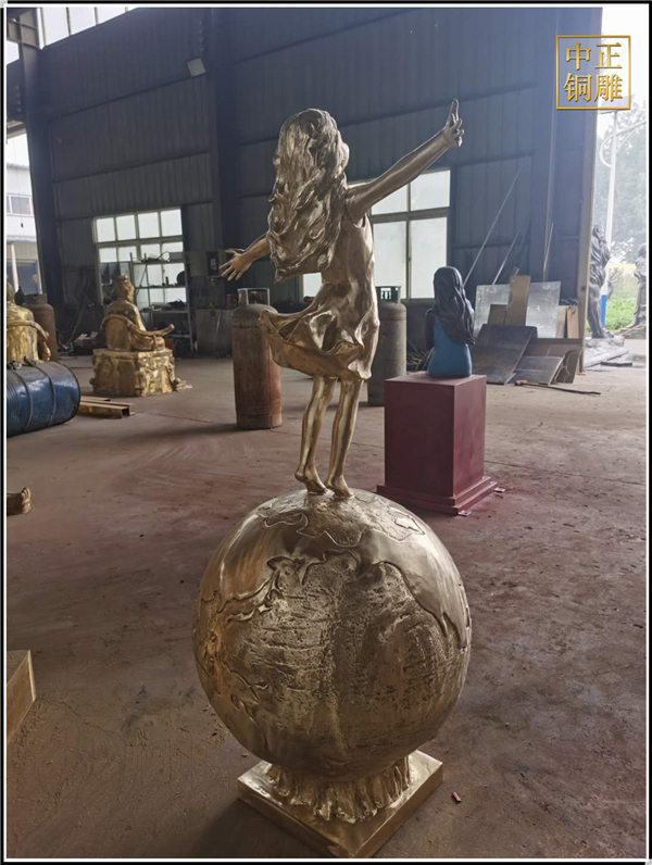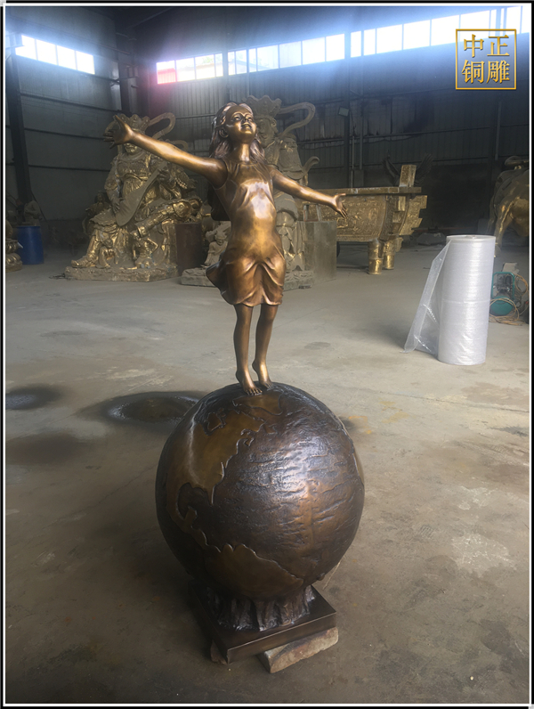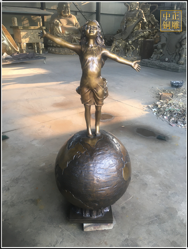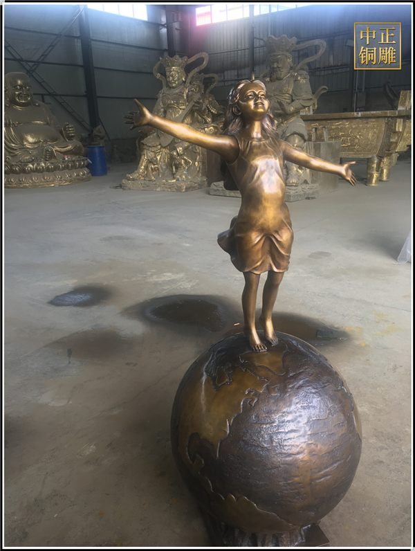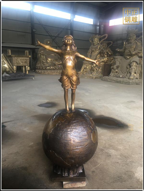 我公司生產(chǎn)的這件高1.5米的站在地球上的小女孩人物銅雕塑已發(fā)往江蘇省鹽城市,這件站在地球上的小女孩人物銅雕塑是以保護(hù)地球環(huán)境為主題設(shè)計(jì)制作的。