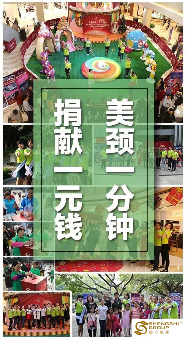 盛世集團聯合【盛世華美天使公益基金】發起“美頸一分鐘,捐獻一元錢”的大型護頸公益活動,旨在向社會大眾傳遞健康與愛;第56屆國際小姐選美大賽上,成功刷新了此項公益的記錄。
